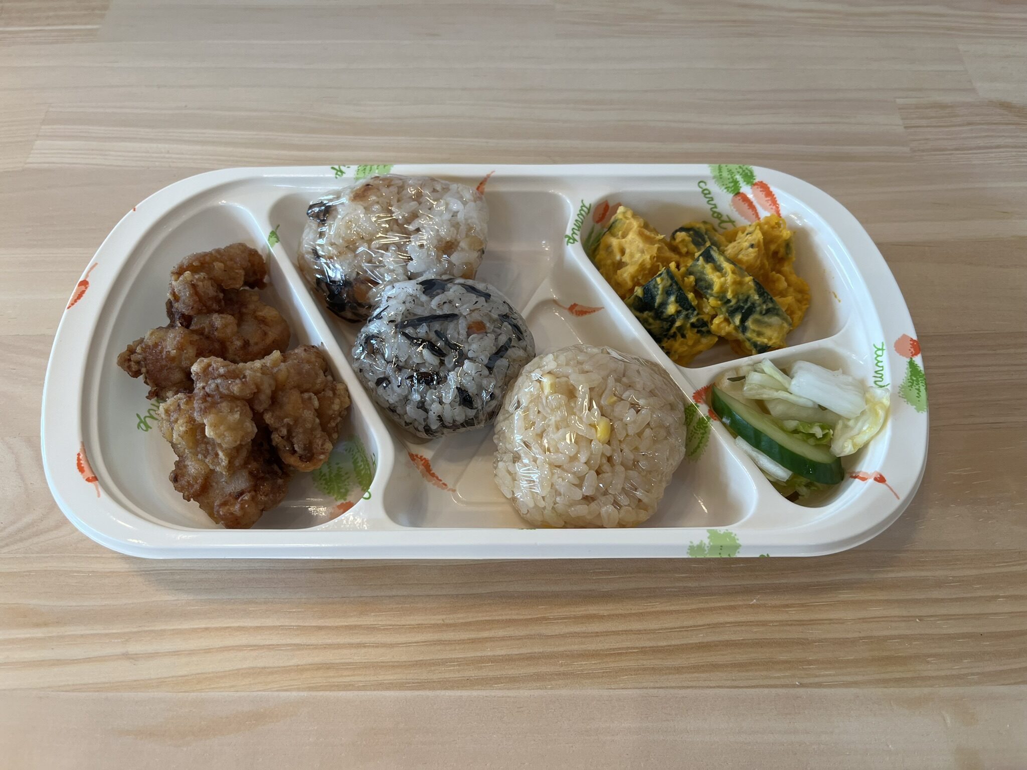 ワンコインおにぎり弁当(揚物・副菜・ワンコインおにぎり3個)